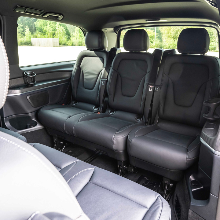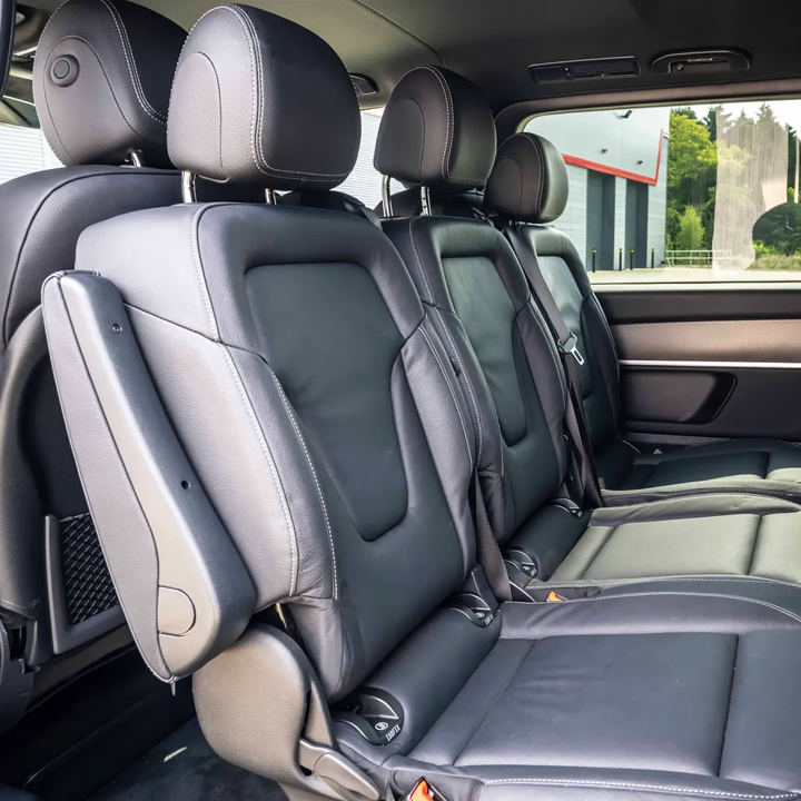 The Mercedes-Benz V-Class is a spacious, well-balanced MPV typically used for family trips, executive travel, and VIP transport. It can carry up to eight passengers and offers flexible seating that lets you switch between passengers and luggage in minutes. It feels calm and steady on long drives. That’s why it’s often used for airport transfers, business travel, and relaxed group journeys.